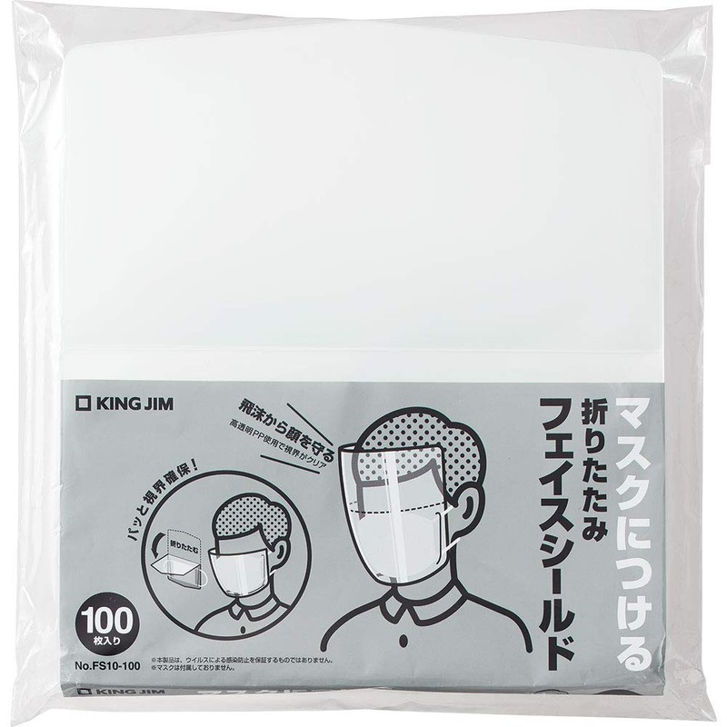 King Jim FS10-100 Folding Face Shield, 100 Sheets, Clear