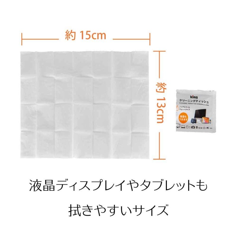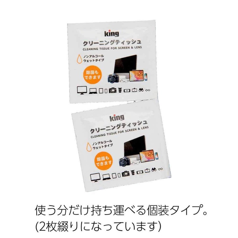 KING KCTFSL-100 Cleaning Tissues, 100 Pieces, Quick Drying, Antistatic, Camera, PC, Smartphone, Glasses, Non-Alcohol, Wet Type
