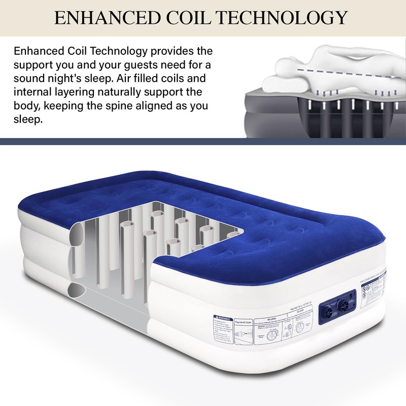 - KING KOIL'S TWIN AIR MATTRESS OFFERS ULTIMATE COMFORT & LUXURY WITH A 1-YEAR WARRANTY DIRECT FROM THE MANUFACTURER: Experience unmatched comfort with our Twin-sized airbed, showcasing a plush pillow top, soft flocking layer, and robust coil-beam construction for superior support. Crafted with durable, waterproof, and puncture-resistant materials, this twin air mattress promises a restorative sleep every night.