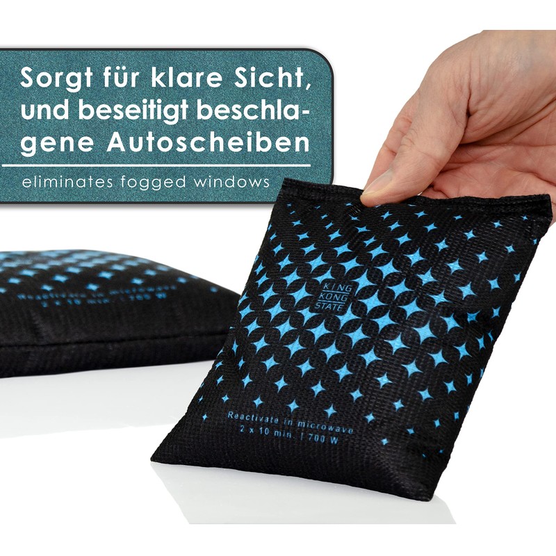 King Kong State Dehumidifier for cars, 2 x 500 g dehumidifier cushions for fogged car windows, with reusable anti-fog filling