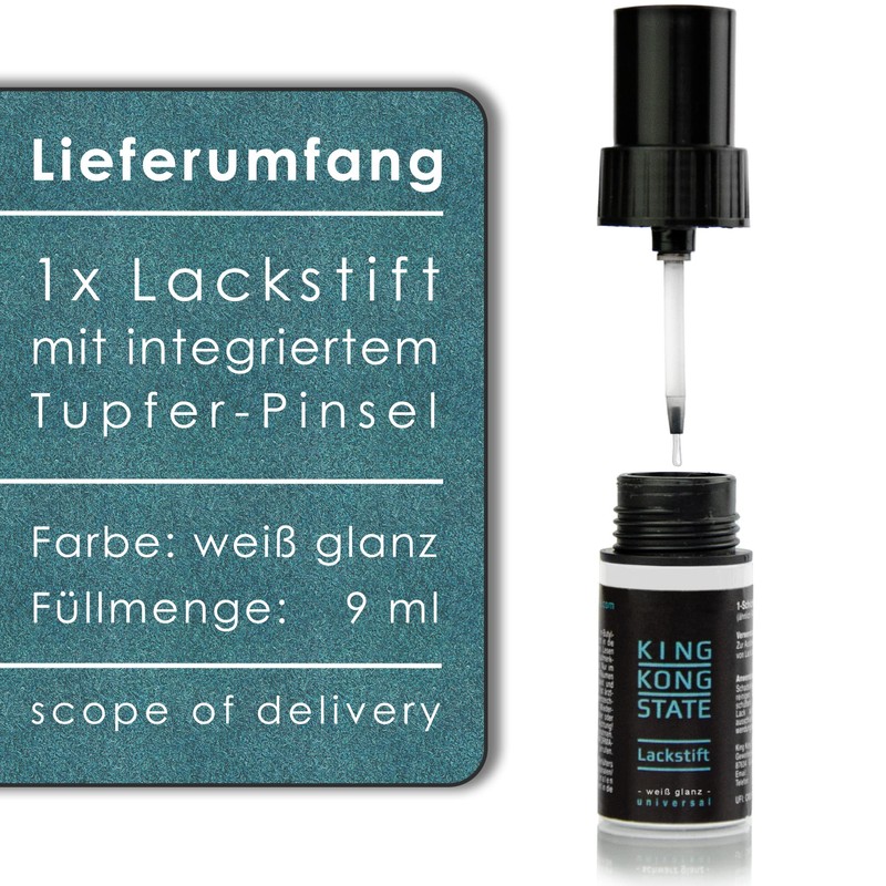 King Kong State Lackstift - WEIß GLÄNZEND - 1-Schicht-Lack zur Ausbesserung von Steinschlägen und Kratzern am Auto (GLANZ)