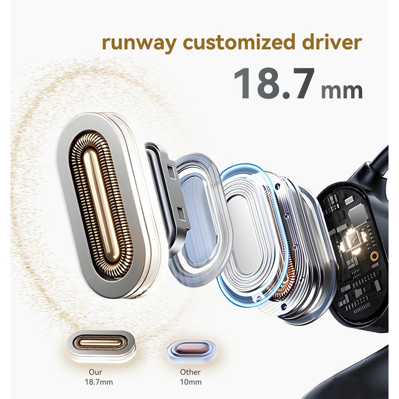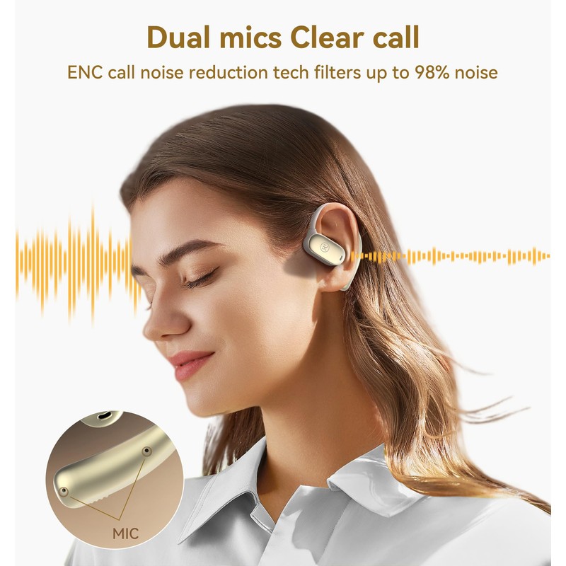 Our open ear headphones redefine comfort and stability. Made from soft silicone, they cling like a second skin, offering unmatched comfort without pressure, even after prolonged wear. The "open owls hanging earphones" design guarantees excellent stability, keeping the headphones secure during sports or everyday activities. Additionally, this design effectively disperses ear pressure, providing a feeling of freedom and relaxation. At just 0.25 oz per earbud, our open ear headphones are nearly weightless, allowing you to concentrate on your music or sports without any distraction from the earbuds. Open ear earbuds Open ear headphones wireless bluetooth Open-ear headphones Open ear headphones bluetooth Open ear wireless headphones Open earbuds Open ear Open ear bluetooth headphones Open ear headphones wireless Open ear headphone Open headphones Open ear wireless earbuds Open ear earbuds wireless bluetooth Bone conduction earbuds Open ear bluetooth Bone conduction ear buds Wireless open ear headphones Wireless earbuds open ear Headphones open ear Bluetooth open ear headphones Headphones wireless open ear Bluetooth open ear earbuds Open ear buds Open earbuds wireless bluetooth Open ear bluetooth earbuds Wireless headphones open ear Air conduction headphones bluetooth Outer ear earbuds Auriculares de oreja abierta Bluetooth headphones open ear Open ear earphones Open air earbuds Open ear buds wireless bluetooth earbuds Bluetooth earbuds open ear Best open ear headphones Ear buds open ear Air conduction headphones Open fit earbuds wireless Out of ear earbuds Open earphones Wireless open ear earbuds Air conduction earbuds Outside ear earbuds Earbuds open ear Running headphones open ear Ear buds that don't go in ear Earbuds that don't go in ear Openfit earbuds Open ear headphones noise cancelling Elevate your audio experience with open ear headphones, designed for superior sound quality and clear calls. The 18.7mm racetrack-shaped custom driver features a motor coil 35% larger than conventional ones, delivering outstanding clarity in high notes, stable mid-tones, and deep bass. Perfect for enjoying music and videos, these open ear headphones provide an immersive auditory experience. With dual mic ENC noise reduction, you can make calls in noisy environments with confidence, as these headphones effectively filter out background noise, ensuring your voice comes through clearly for seamless communication. Never worry about battery life again with open ear earbuds. The LED digital liquid crystal display on the charging case lets you check playback progress and battery levels easily, whether it’s day or night. Enjoy an impressive 8 hours of playtime on a single charge, and extend it to 60 hours using the charging case. Even in a hurry, a quick 5-minute charge provides an additional 1 hour of playtime, ensuring you stay powered up and ready to go. These open ear bluetooth earbuds combine convenience and long-lasting performance for your everyday needs, making them the perfect companion for music, podcasts, and calls. Experience seamless connectivity with open ear wireless Bluetooth headphones. Equipped with the latest Bluetooth 5.3 chip and multi-point connection functionality, these headphones offer wide compatibility with iPhone, Android, and Windows systems. Effortlessly switch between devices like mobile phones, computers, and laptops, ensuring stable transmission and meeting your needs for multi-device collaboration. Easily transition from a conference call on your laptop to streaming music on your phone or switching between any two devices such as mobile phones, computers, and laptops, enhancing both your work and entertainment efficiency. Discover the convenience of humanized touch control and IPX5 waterproof technology with open ear wireless Bluetooth headphones, a superior choice over bone conduction earbuds. Our R&D team has optimized the touch control area to be on the side of the mic, eliminating issues with accidental touches during vigorous activities. Additionally, each earbud is treated with a waterproof nano-coating and boasts an IPX5 rating, ensuring they remain safe from sweat and humidity. This makes them perfect for use during exercise, giving you peace of mind and reliable performance. Keywords: bone conduction earbuds, open owls hanging earphones, bone conduction earbuds, open ear bluetooth earbuds, open ear headphones wireless bluetooth With these features and functionalities, our open ear headphones not only provide an exceptional user experience but also showcase superior performance in various scenarios. Buy now and elevate your auditory experience to the next level.