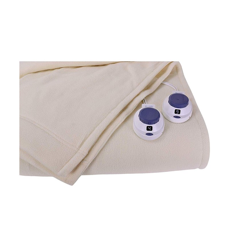 We’ve designed a safe and incredibly soft electric blanket that is probably one of the most comfortable blankets you'll ever have the luxury of snuggling up in. This electric blanket starts with super soft micro-plush fabric that is refreshingly smooth next to your skin for the ultimate in luxurious comfort. Constructed within the blanket is the patented Safe & Warm low-voltage technology. This low-voltage blanket includes a small power supply box that changes 120 volt AC home current into non-hazardous low voltage DC current (very similar to a battery) to provide warmth, protection and safety even if the blanket becomes wet. Unlike other warming blankets with their thick bulky wires, the wires in the Soft Heat blankets are so small and thin; they are virtually unnoticeable. During construction we place the thin wires 3-inches apart and evenly distribute them from head to toe. The benefit to you is a blanket that gives more of an even heat and all over penetrating warmth with no annoying hot or cold spots. The queen size blanket is divided in two separate zones and comes standard with two easy to read, easy to turn, non- slip computerized controllers to adjust the temperature of each side of the bed giving individual comfort and control. A giant backlit display with auto dimming feature provides more convenience for night time adjustments with out having to turn on the lights. It has an automatic pre-heat and hold feature that makes sure that your bed is warm and cozy before you climb in for the night. You simply turn it on and the blanket will warm up on HI until it reaches the temperature that you pre set your dial on and then adjusts itself to hold it there. For your safety, convenience and power conservation it has an automatic shut off feature that will shut the blanket off after 10 hours just in case you forget. It also comes standard with built in over-temperature protection for that extra bit of safety and peace of mind. This warming product has been designed to provide you a gentle relaxing heat. It will NOT feel warm to the touch of your hand, even on the highest (HI) setting. You must actually use it to experience the cozy warmth that it will generate. If the control lamp is lit, it is working. We suggest you start at the HI setting for the first use and then adjust down to your personal comfort level. To receive the most pleasure from your warming product, read your User Manual. Note:For issues with one side not heating up please check all connections to make sure they are secure and tight. When plugging in the controllers hold down the power button to hard reset them to ensure they are operating properly. Follow page 2 of the instruction manual linked on the product page for proper setup. Troubleshooting steps can be found on page 4 for common issues. If product is not heating up properly fold it over on itself and turn the dial setting to HI. Ensure the controller lamp is lit and after approx. 5 mins carefully feel between the layers. Never leave product turned on and folded for more than a few minutes. If product is turning off automatically, the 10 hour automatic shutoff feature may be activated. Simply push the ON button again and your warming blanket will heat for an additional 10 hours.