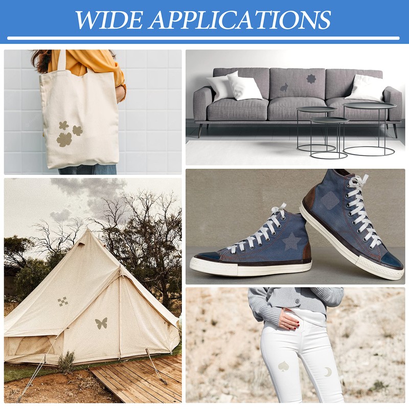 - Wide Applications: Fabric patches work well with fabrics such as linen, velvet, suede, cotton, leather, and nylon. You can DIY cut and design any shape you like on clothes, sofas, tents, car seats, handbags, luggage, curtains and other items, and repair and reinforce them to make it look more creative.
