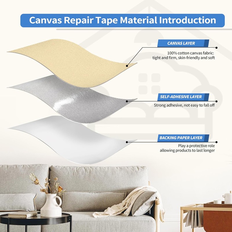 - [Made of 100% Cotton Canvas ]:The 0.6mm thick canvas patch is tight and firm but soft.Integrate with the sofa.Super durable.Great for repairing all kinds of torn fabrics, protects and reinforces fabrics.