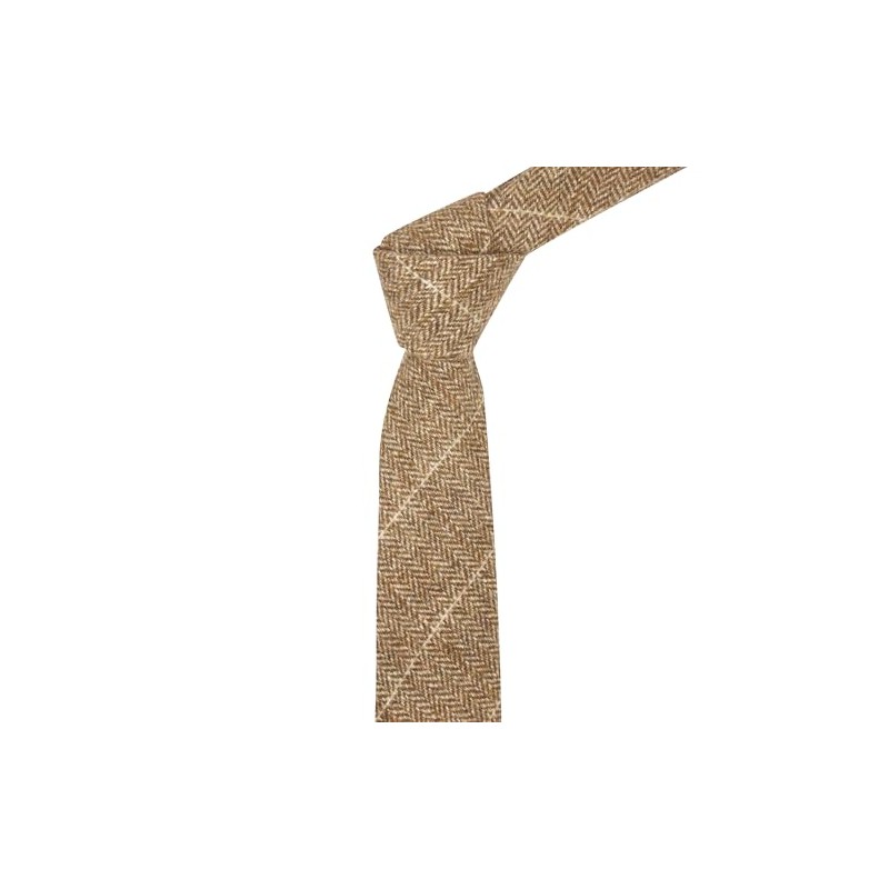 - Stunning brown tie in a premium herringbone fabric with windowpane check