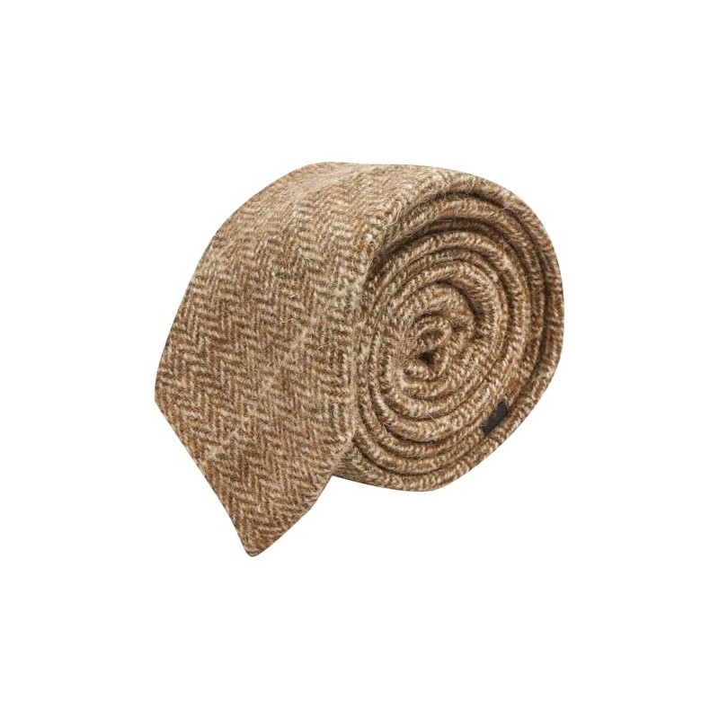 King & Priory Brown Herringbone Windowpane Check Tweed Tie, Mens Necktie