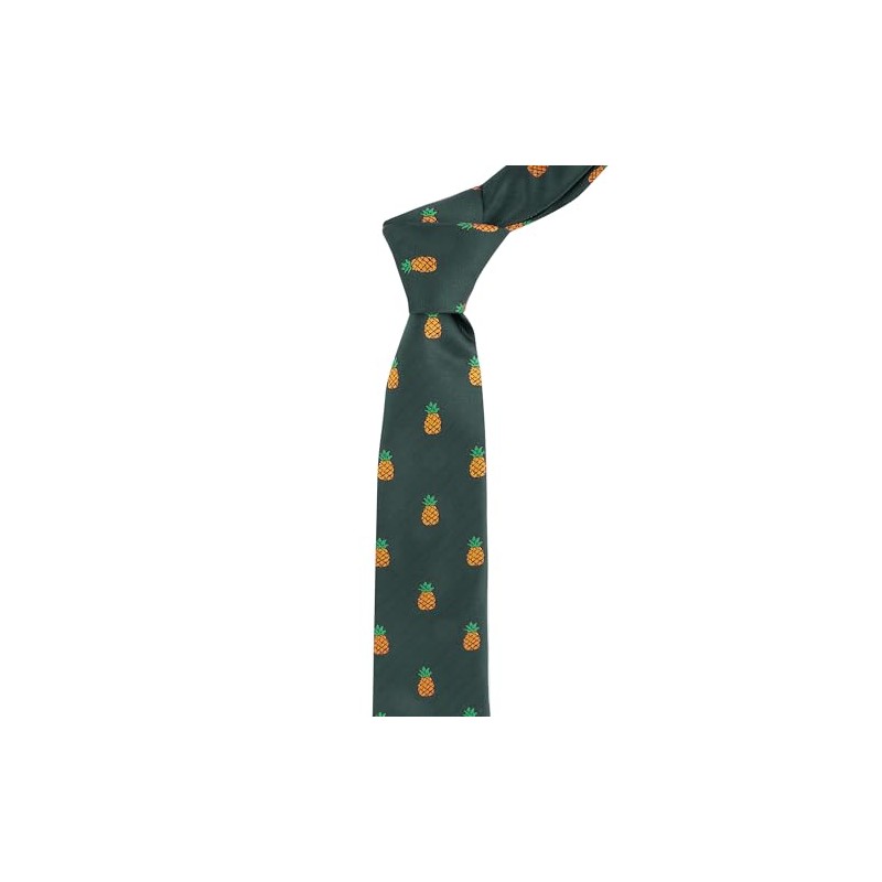 King & Priory Pineapple Dark Green Herringbone Embroidered Tie