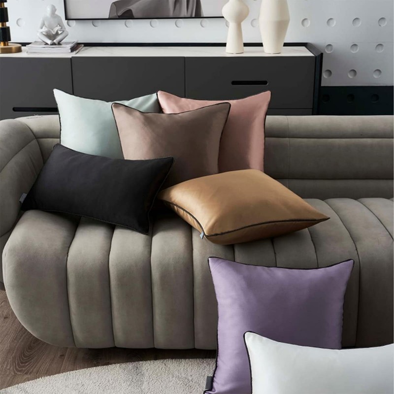 - Material: Made of high density microfiber heavy satin fabric, with silky luster and soft feeling. Cool touch suitable for Summer. High quality dyeing process presents perfect colors. Black and white mixed piping around it to add elegance and durability.