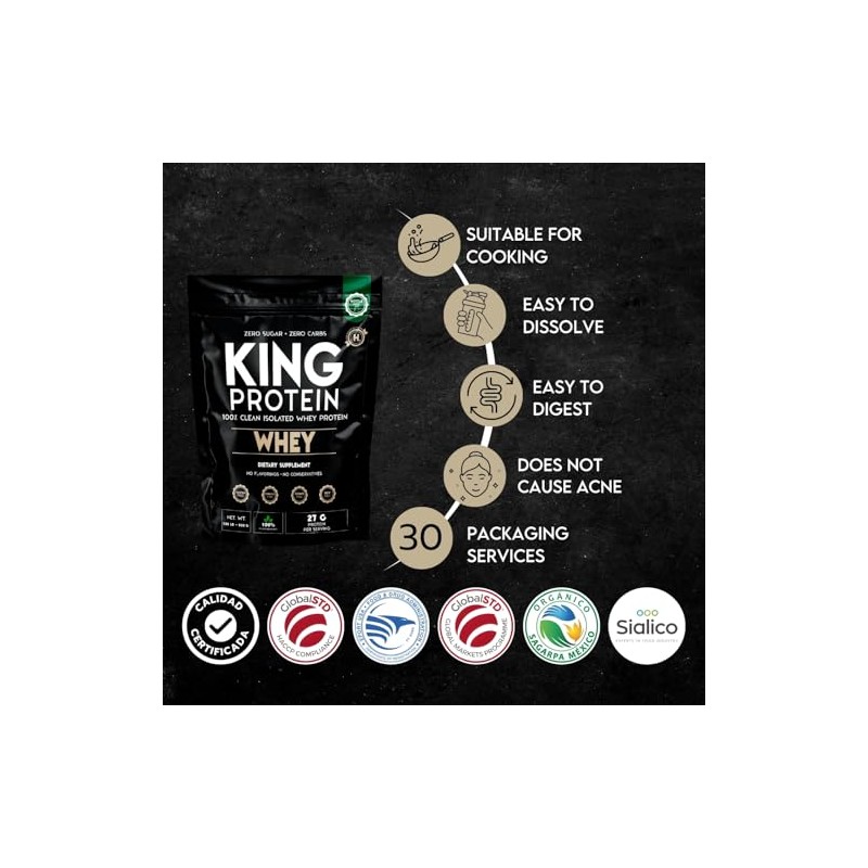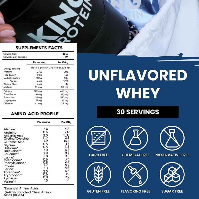 KING Protein KING Protein Clean Whey Isolate Protein Powder Unflavored | 27g per Serving w/Organic BCAA | Pre-Post Training | 100% Natural | No Carbs | Preservatives & GMO, Soy and Gluten Free | 30 Servings