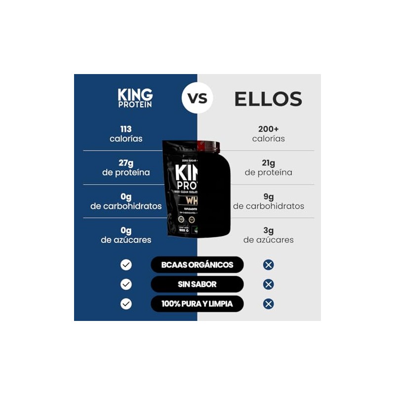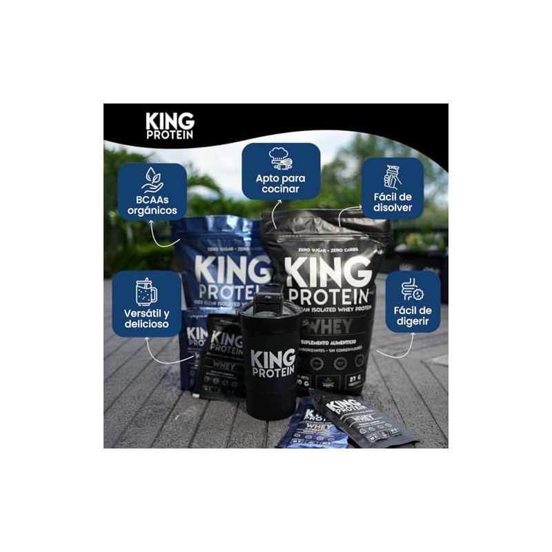 KING PROTEIN Protena de suero sin sabor 27 g de protena con BCAA Para antes y despus del entrenamiento Sin carbohidratos, conservantes, soja ni...