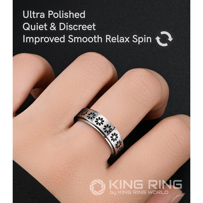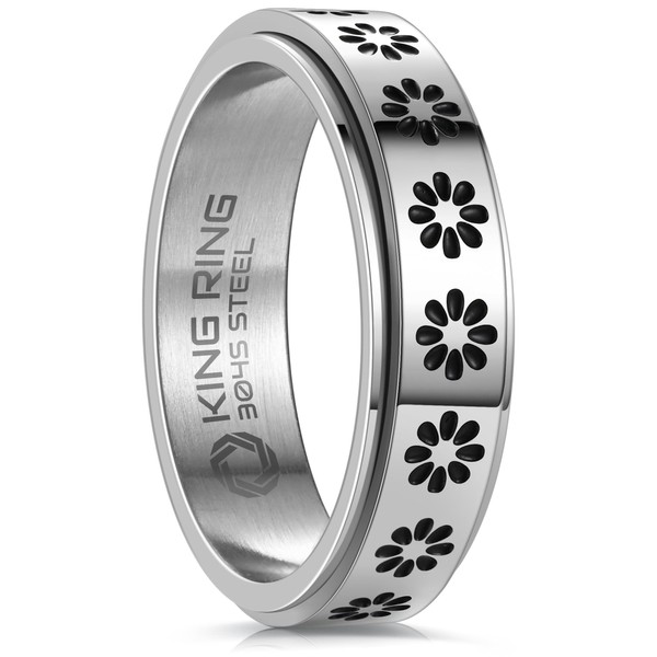 King Ring 6mm Fidget Ring – Spinner Ring for Men & Women K49 – Flower Silver 12