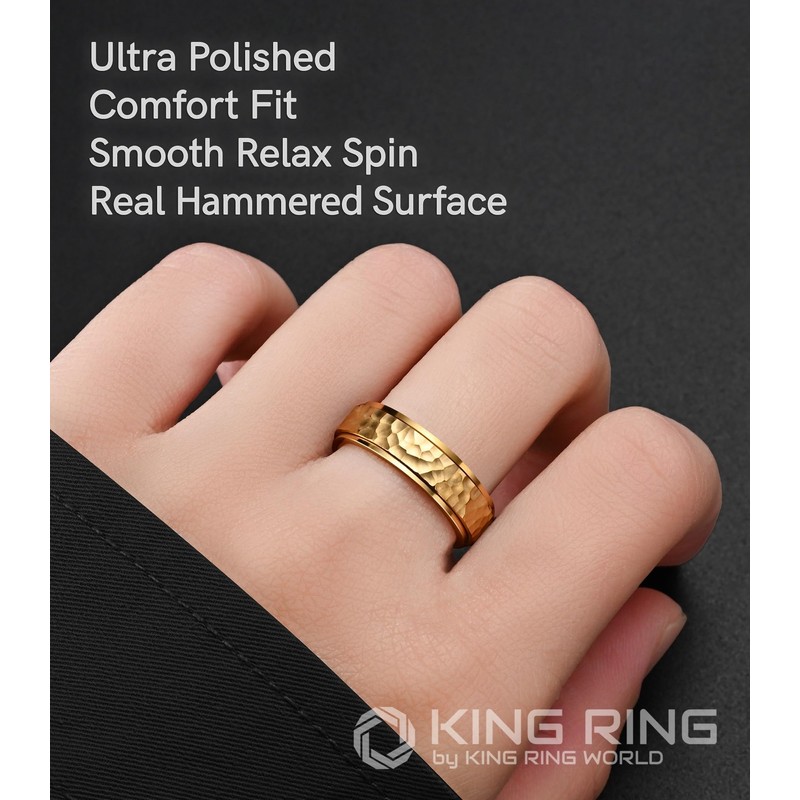 King Ring 6mm Spinner Hammered Ring – Shining Fidget Ring for Stress Relief Stainless Steel Spin Rotating Ring for Men & Women K39V2 – Gold 6