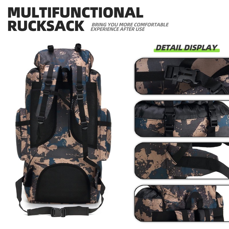 - 【Large-capacity Loading】: 80/100L large capacity camping hiking backpack, large-capacity main storage + 4 large external hanging system, the main bag can hold clothes, quilts, tents, sleeping bags and travel items, and can hold 2-6 people travel equipment. Four external hanging systems can be used to tie tents, moisture-proof mats + trekking poles + tie sleeping mats, picnic mats + side water bottles.