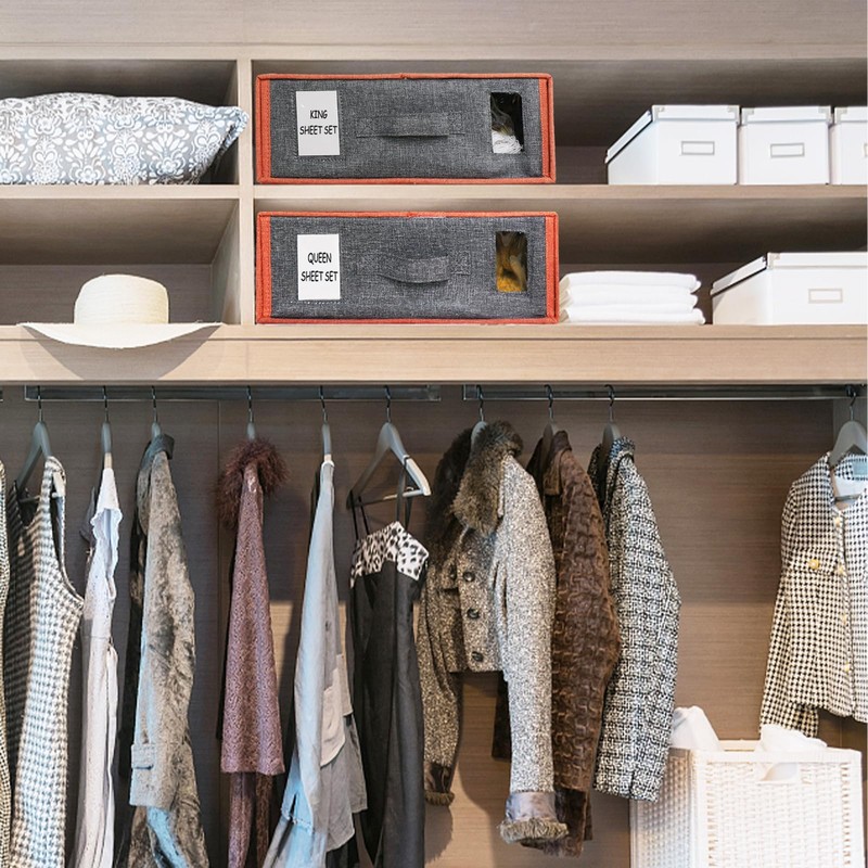 - Labels and Handles: Find what you need quickly with our labeled storage boxes. Handles allow you to pull them out of the closet and access your linens