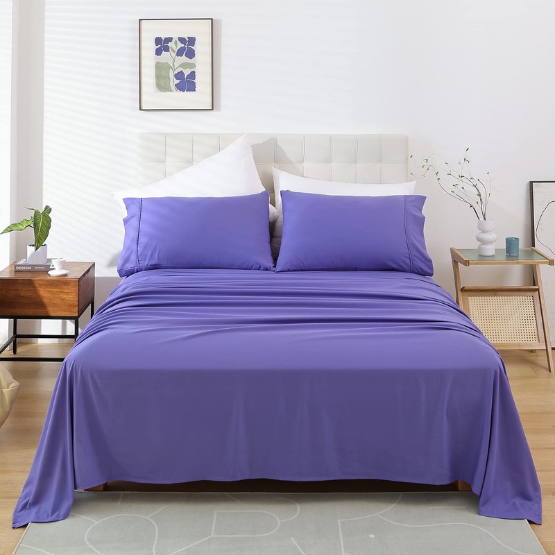 King Size Sheet Set - Luxury Soft Comfy Bed Sheets, Breathable Cooling Hotel Bedding for Women, Men, Teens, Extra Deep Pocket, Easy-Fit, Oeko-Tex, Wrinkle Free 4 Piece - Peri Purple