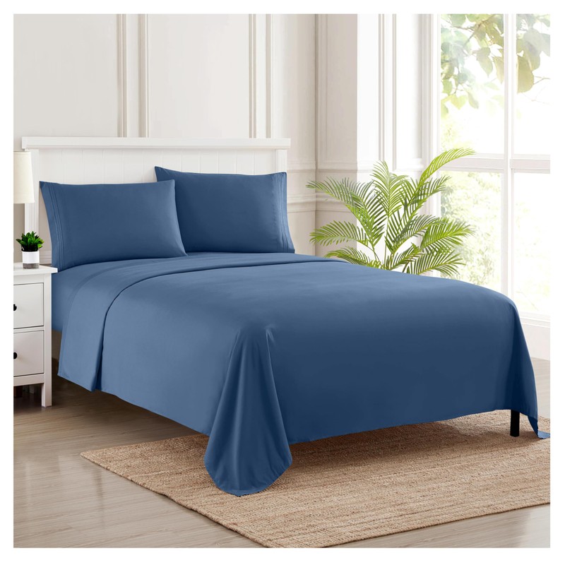 King Size Sheets - Breathable Luxury Bed Sheets with Full Elastic & Secure Corner Straps Built In - 1800 Supreme Collection Extra Soft Deep Pocket Bedding Set, Sheet Set, King, Denim