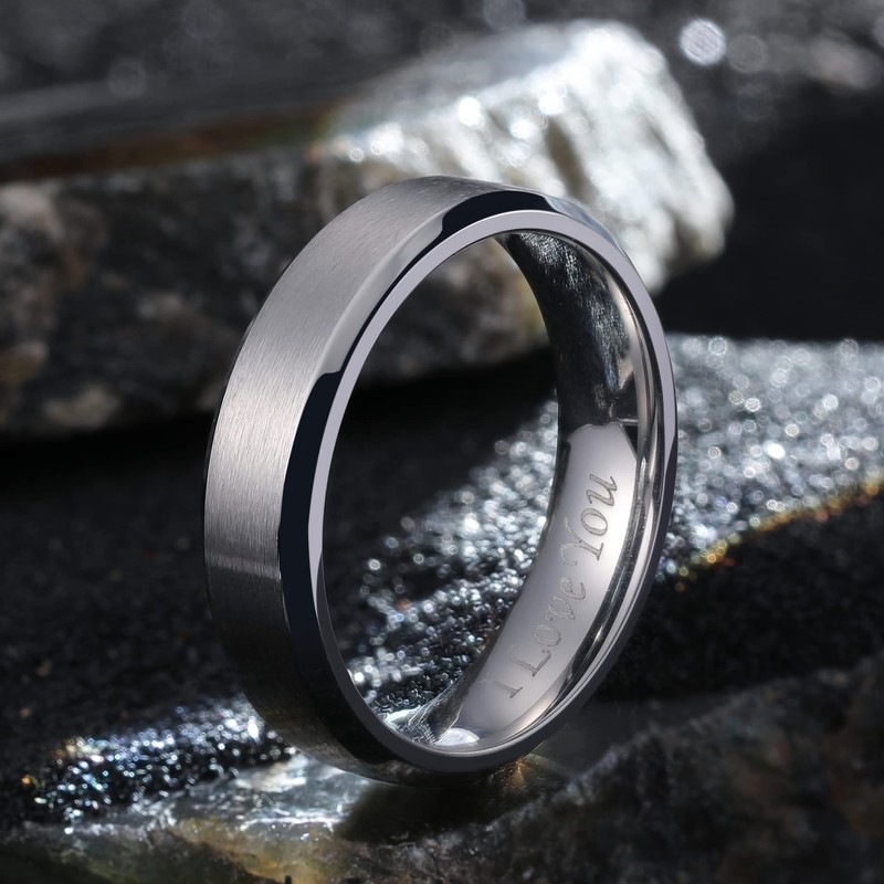 - LOVE DESIGN - BASIC Collection: Plain 6mm stainless steel wedding ring laser etched I Love You. Wear the oath on your hand, let the love surround you.