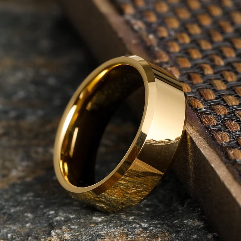 - CLASSIC AND TIMELESS DESIGN: 8mm Gold Mens Tungsten Ring for Men High Polish Finish Beveled Polished Edge