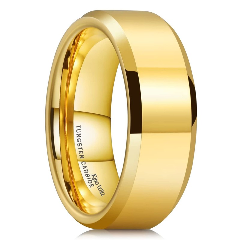 King Will 8mm Gold Men's Tungsten Carbide Rings High Polish Finish Beveled Polished Edge Comfort Fit 11