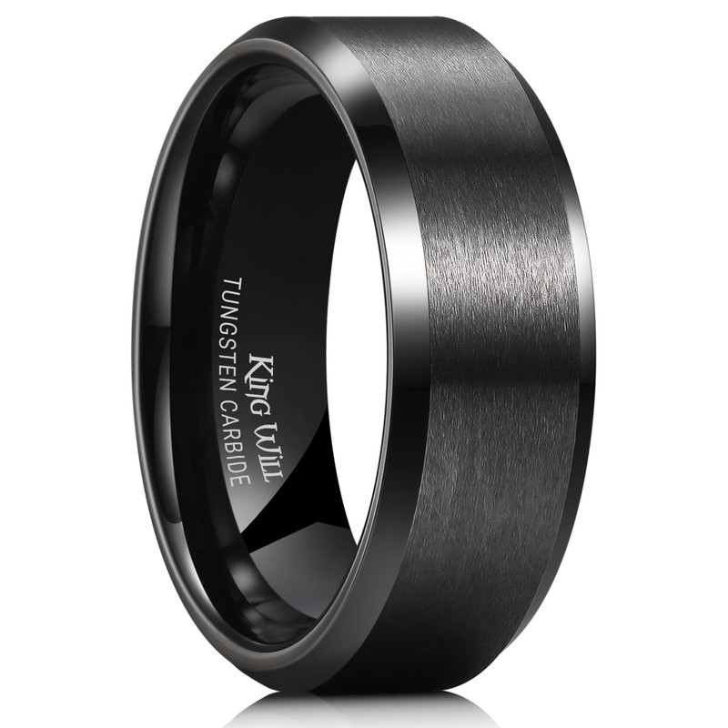 King Will BASIC 8mm Black Men Tungsten Ring Wedding Brand for Men Women Matte Brushed Beveled Polished Edge 6.5