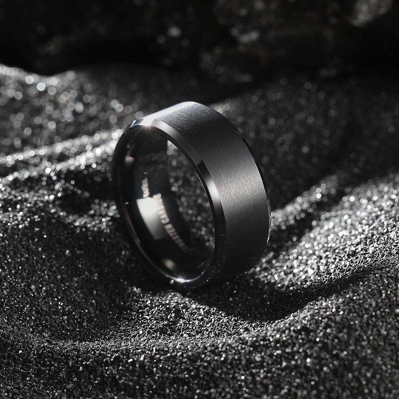- CLASSIC DESIGN: 8mm wide Men Women black Tungsten Ring Matte Brushed edge and high polished comfort fit inner face