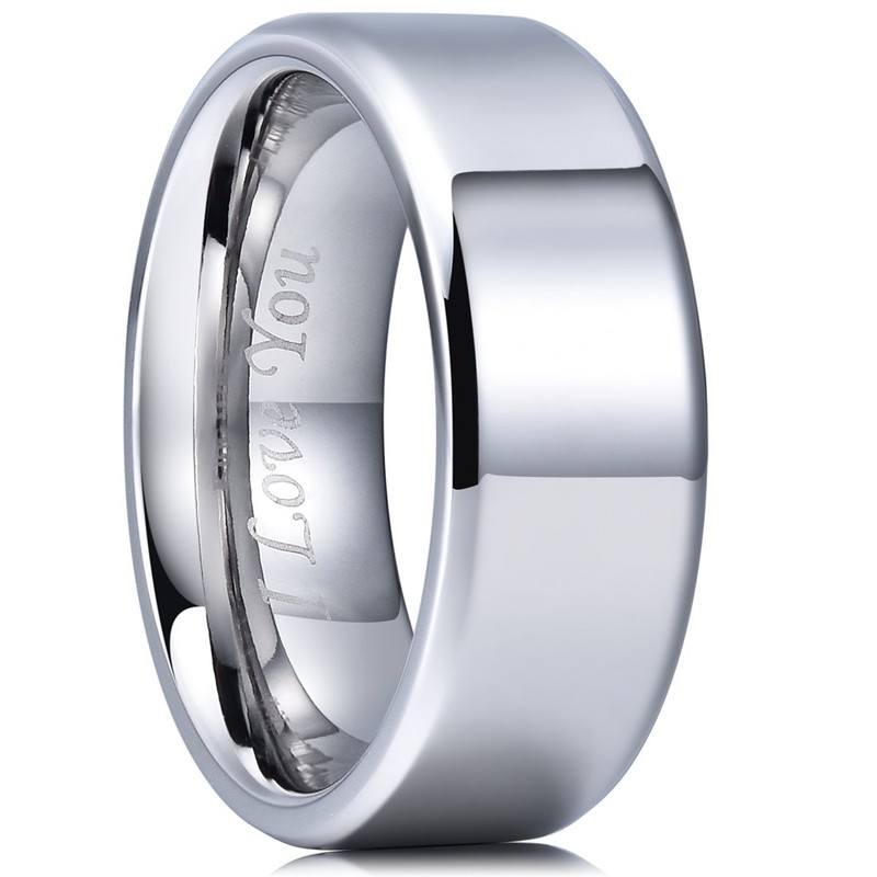 King Will BASIC 8mm Stainless Steel Ring Polished Plain Beveled Edge Wedding Band Laser Etched I Love You 8