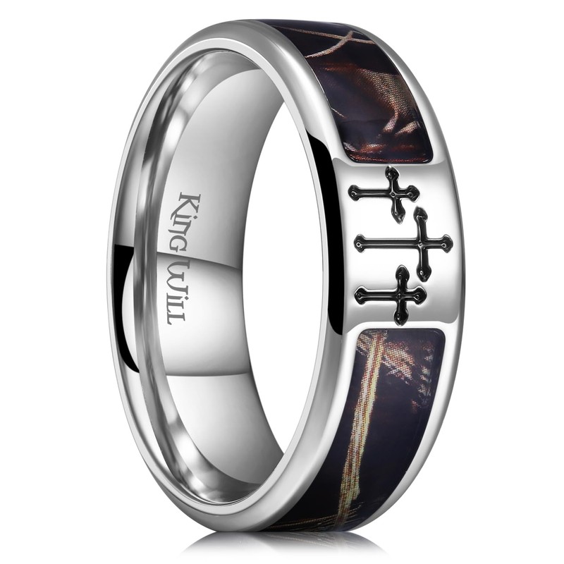 - Symbol of Faith丨This unique wedding band is designed for men who value both their faith and their love for the outdoors. Our Cross Ring inlays a modern and trendy camouflage pattern, adding an edgy touch to your everyday style