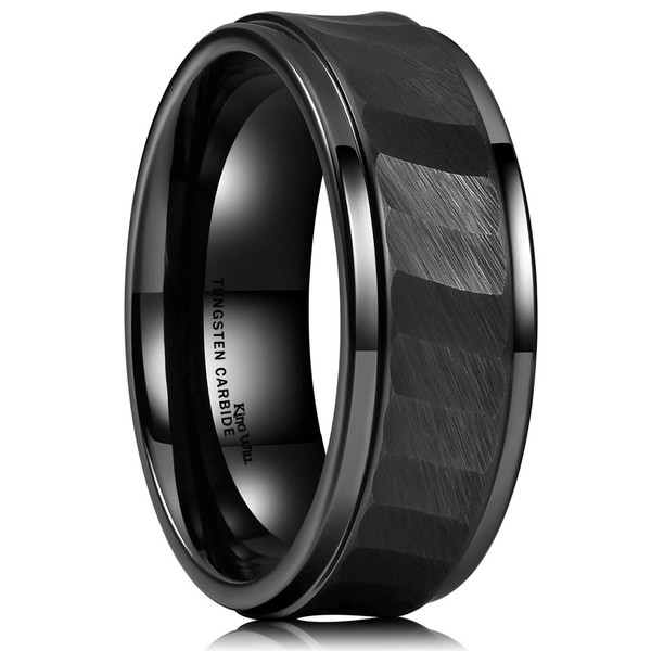 King Will HAMMER 8mm Black Tungsten Carbide Ring Hammered Brushed Mens Wedding Band Comfort Fit 12