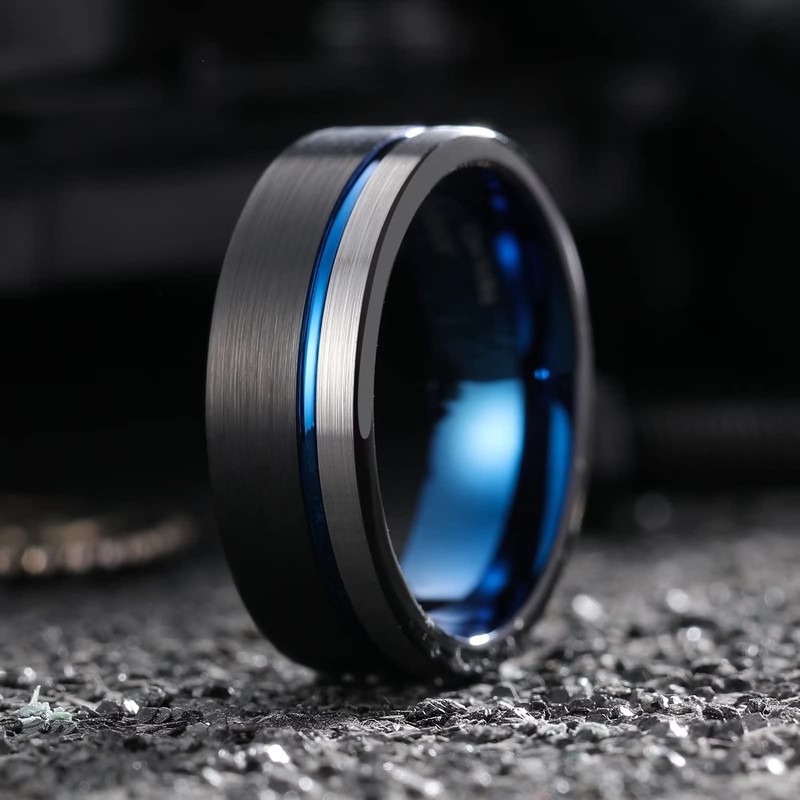 - ✔️GROOVE DESIGN: 8mm Black Mens Tungsten Ring Centre Blue Groove, inner blue plating, two-color plating classic style innovation.