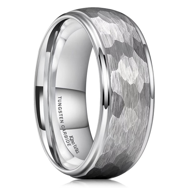King Will Mens 8mm Silver Hammered Tungsten Rings for Men Domed Multi-Faceted Brushed Step Edge Engagement Mens Wedding Band 11.5