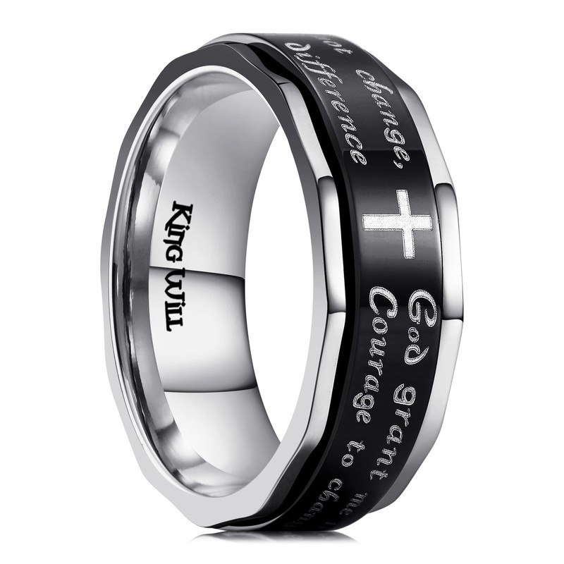 King Will Spinner 8mm Stainless Steel Ring Black Religious Cross Serenity Prayer Rotatable Ring Anxiety Relief for Men Women 14