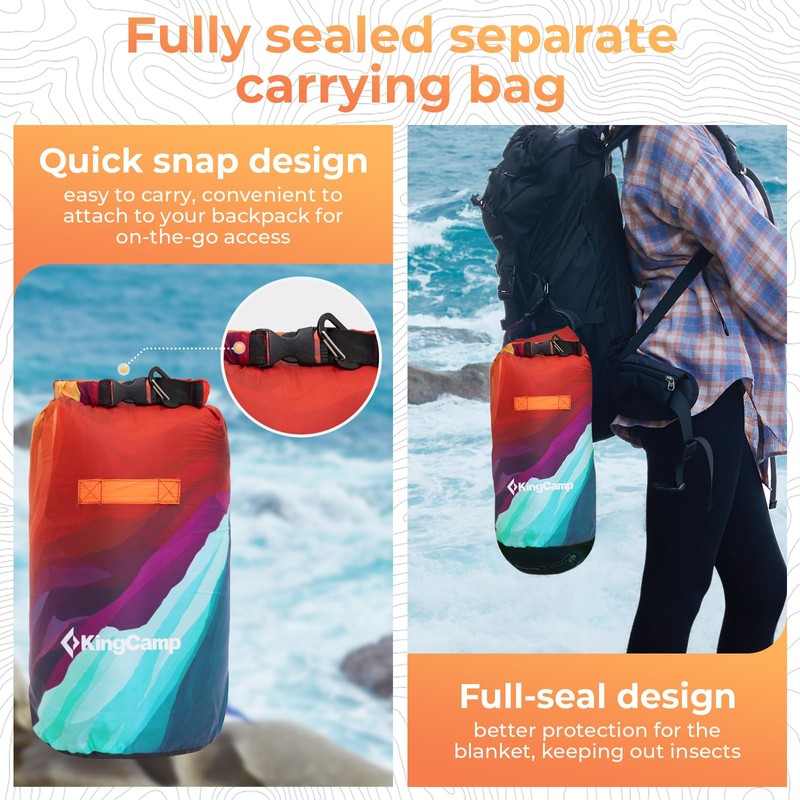 KingCamp Waterproof Lightweight Camping Blanket - All-Weather Warm Thermal Throw with Snap Buttons, Packable Travel Blanket for Outdoor Picnics, Beach, Hiking, Car, Camping & Indoor 78.7" x 57.1"