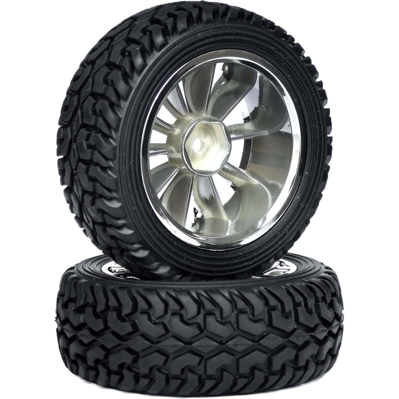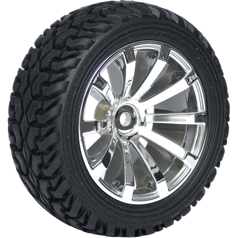 - Box contents: 4 pieces 75 mm RC car tyres and wheel