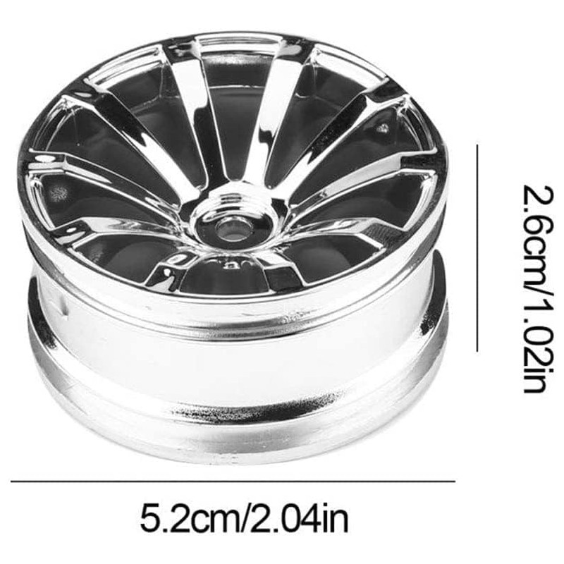 KINGCOO RC Car Tyres and Wheels Set, 4 Pieces 75 mm Rubber Tyres and Plastic Wheels 10 Spoke Rims for 1/10 RC On Road Racing 1/16 RC Rally Car for Kyosho Tamiya HSP HPI (Silver)