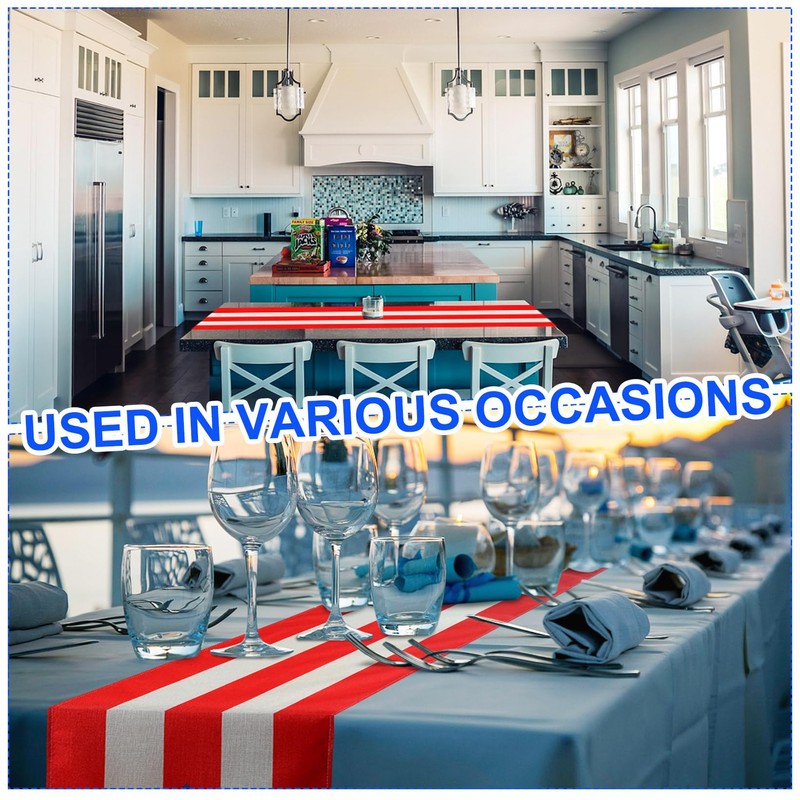 - Reasonable Size: each linen flag table runner measures about 13 x 72 inches/ 33 x 183 cm in width and length, the right size for you to decorate most tables of 4-6 people; Please double confirm whether the size is proper before buying