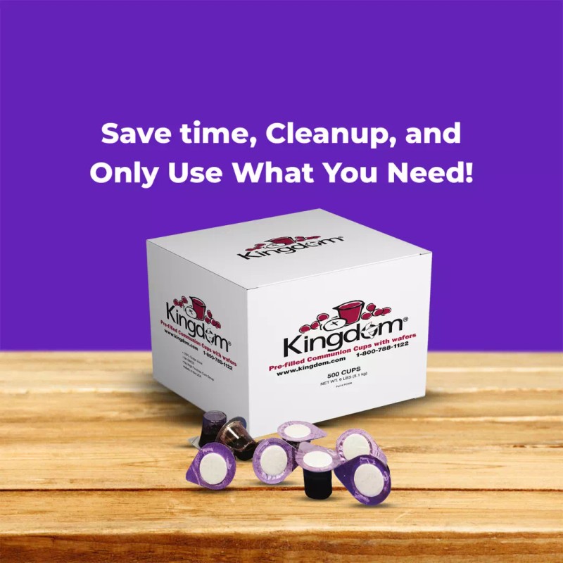 Save time, cleanup, and only use what you need! Kingdom Prefilled Communion cups have your grape juice and wafer sealed into a convenient, single-serving container. Lengthy prep time and cleanup are eliminated! Easily serve Communion anywhere! You can distribute these pre-filled Communion cups as people enter the service or use traditional Communion trays. Pre-filled Communion cups are not just for services! They are also perfect for hospital and shut-in visits, outdoor events, Summer camps, and more! One-Year Shelf Life and great tasting grape juice! Kingdom’s new pre-filled Communion cups deliver a lot of the features our customers have been requesting! One-year shelf life means you have even more time to use these Communion cups.
