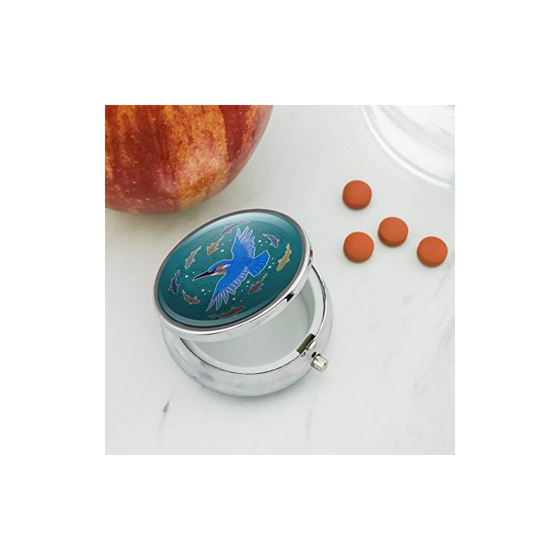 Kingfisher Bird Swimming with Fish Pill Case Trinket Gift Box