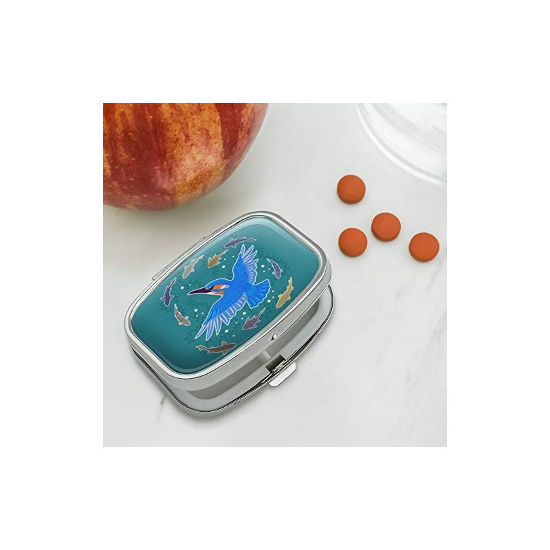 Kingfisher Bird Swimming with Fish Rectangle Pill Case Trinket Gift Box