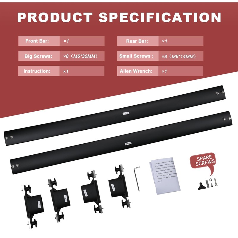 - 【Easy to Install on Vehicle】 Come with necessary installation tools, and easy to assemble and disassemble in a few minutes. Labeled front and back so no guessing on which one goes where. By loosing and sliding the base to accommodate to your vehicle side rail.