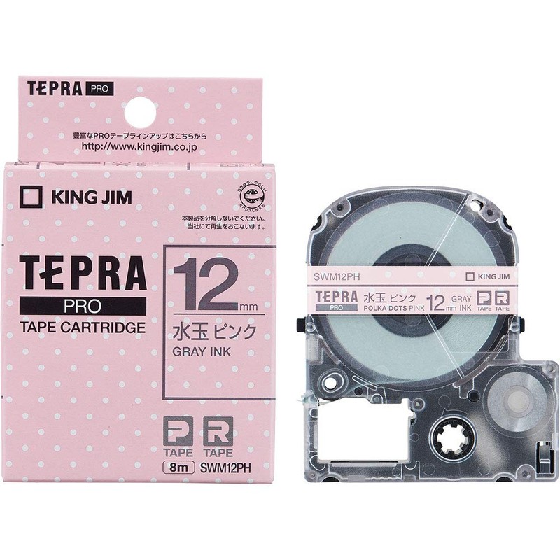 【純正】 キングジム(Kingjim) テプラPROテープカートリッジ 模様ラベル 12mm 水玉ピンク/グレー文字 長さ8m SWM12PH