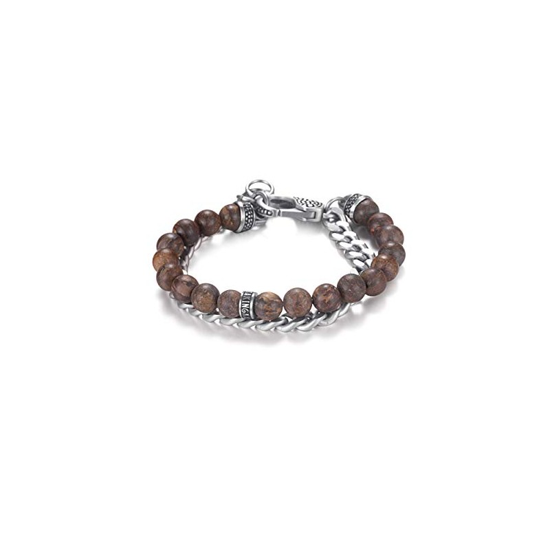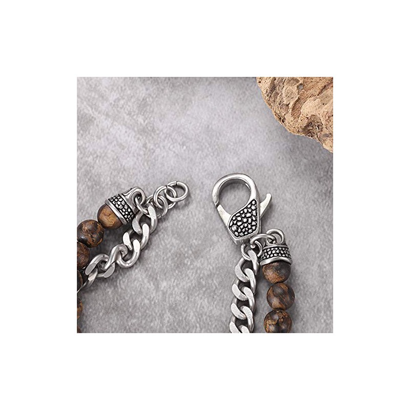 Kingka Men's Wrap-Around Bracelet with Bronzite Stones and Curb Chain