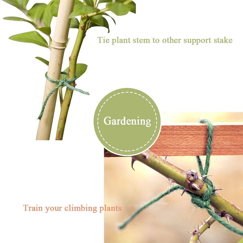 - 【Practical Garden Twine】Jute string is ideal for many gardening use, such as tying up plants/shrubs, supporting climbing plants or other vegetables and fruits, give them strong support and better growth, green string blends well in garden.