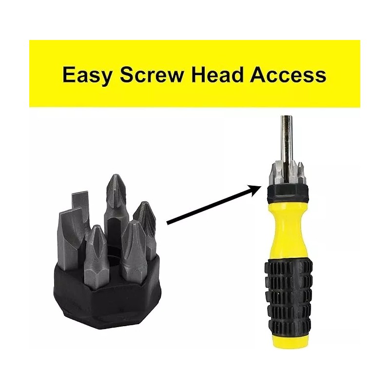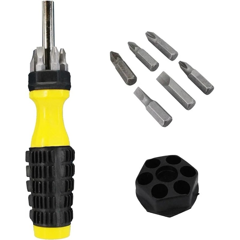 - 6-in-1 screwdriver set includes 6 screwdriver ends