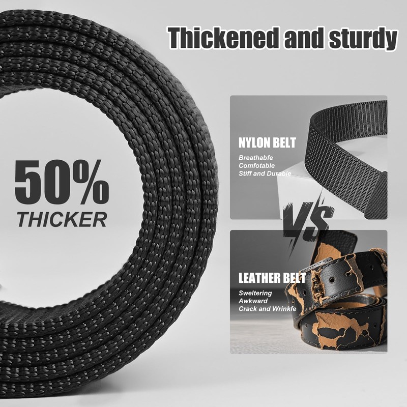 - Thickened Nylon Webbing, Built to Last:50% thicker than ordinary belts, offering superior durability and load-bearing capacity. Highly breathable material keeps you comfortable all day long—no more sweating or discomfort.