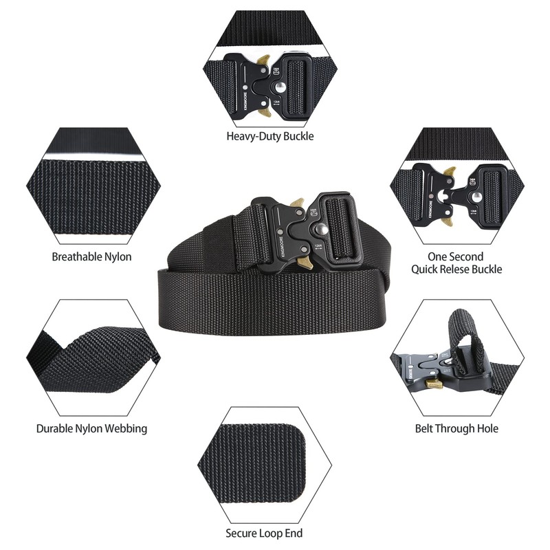 - Military-Grade Quick Release Tactical belt: Crafted from premium aluminum alloy, Effortlessly fasten and release in seconds. Designed for ultimate versatility, it perfectly complements jeans, cargo pants, tactical gear, and outdoor wear—keeping you ready for action, anytime, anywhere.