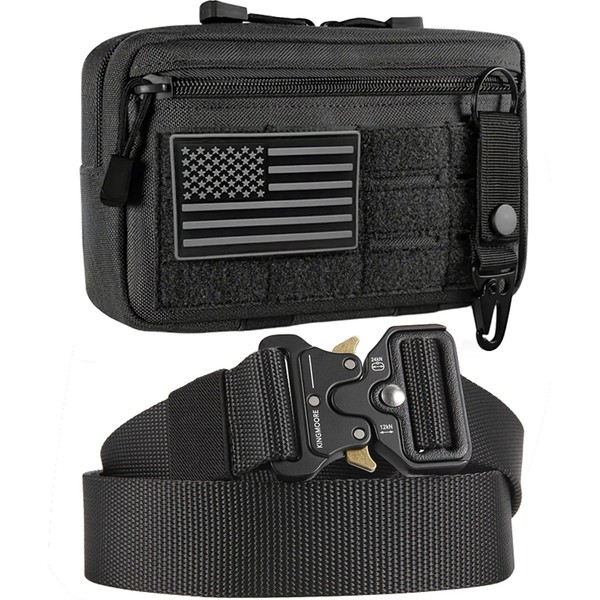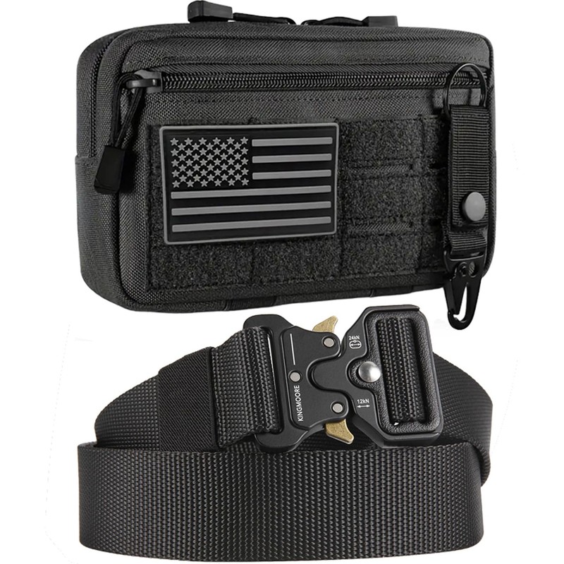 KingMoore EDC Molle Pouch and Quick-Release Tactical Belt (Black, Medium-for Waist 30"-36" (Belt Length 45"))