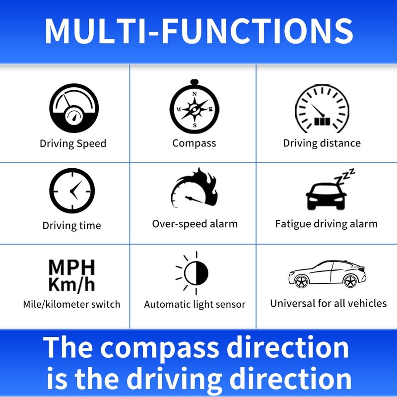 • 【MULTI-FUNCTIONS】 This GPS speedometer HUD not only displays the vehicle's driving speed in time, but also displays Single Driving Time, Single Driving Mileage, Total Driving Mileage, Local Time. Car battery voltage Let you know the key information for your trip.