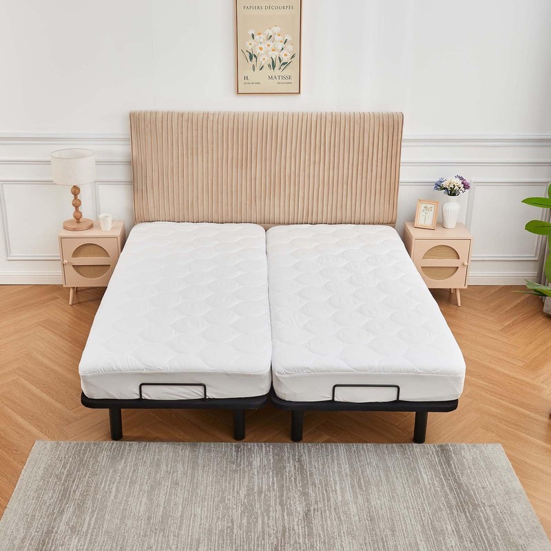 Kingnex Quilted Split King Mattress Topper Pad for Adjustable Bed Breathable Fitted Fluffy Pillow Top Mattress Pad