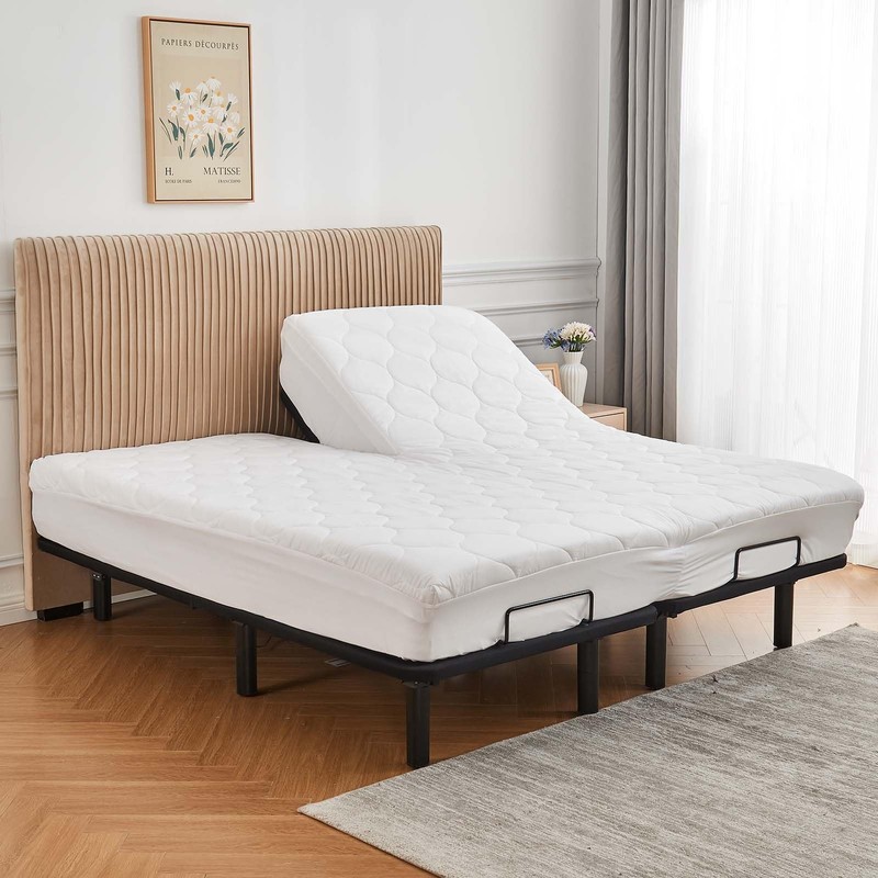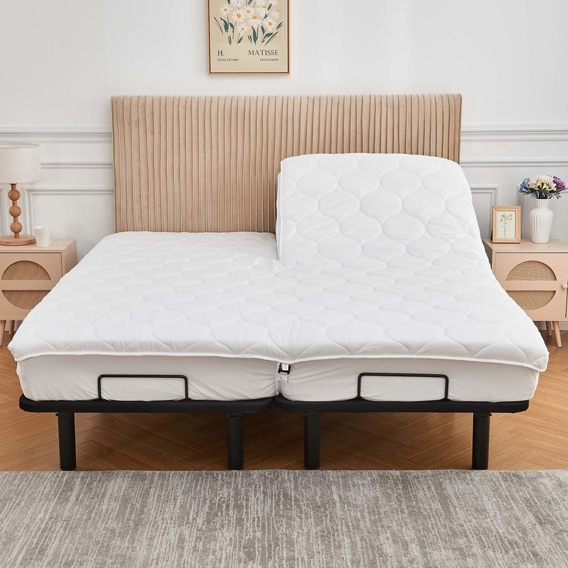 Kingnex Quilted Split Top King Mattress Topper Pad for Adjustable Bed Breathable Fitted Fluffy Pillow Top Mattress Pad Split Top King